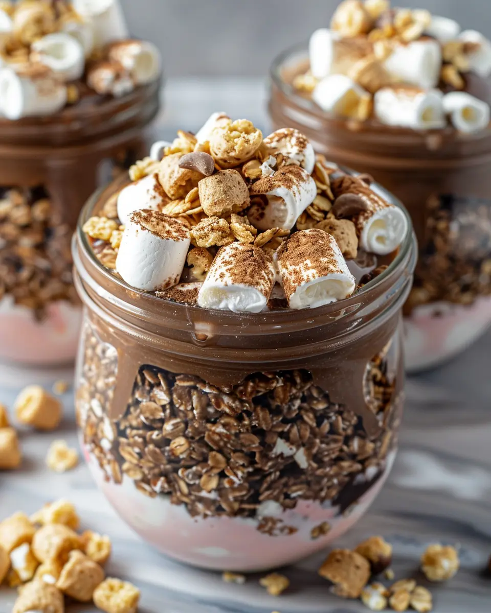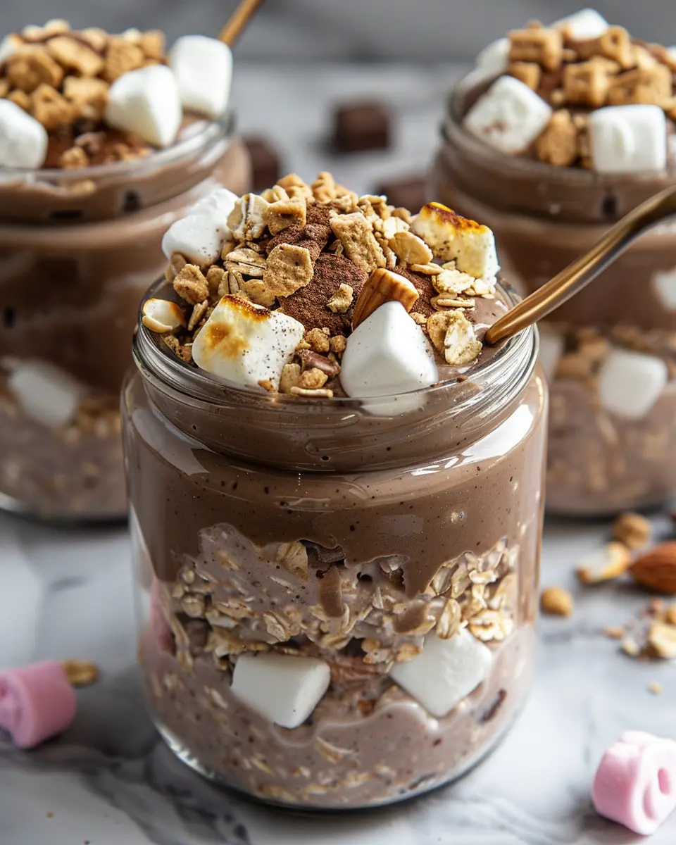 Delight in the rich flavors of chocolate, marshmallow, and graham cracker in these easy S’mores Overnight Oats.