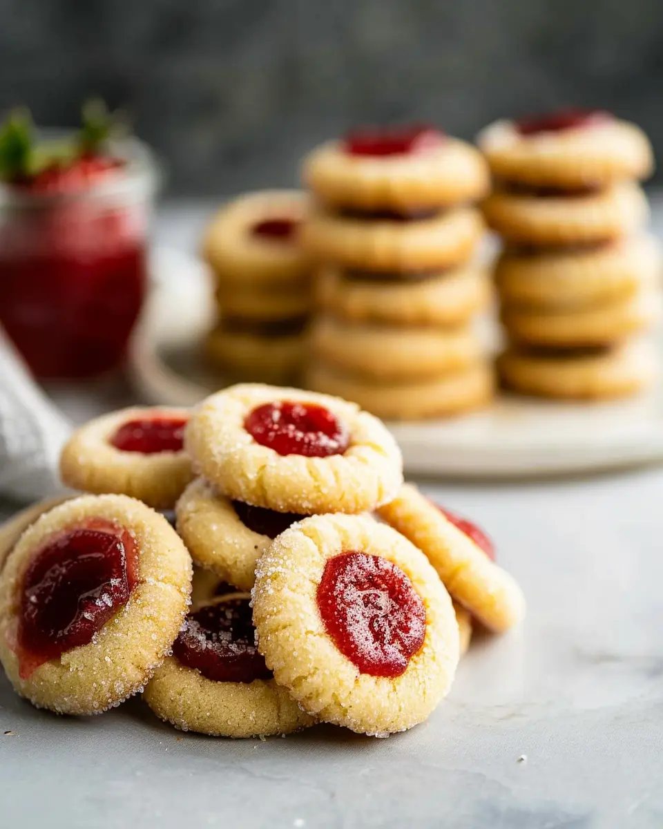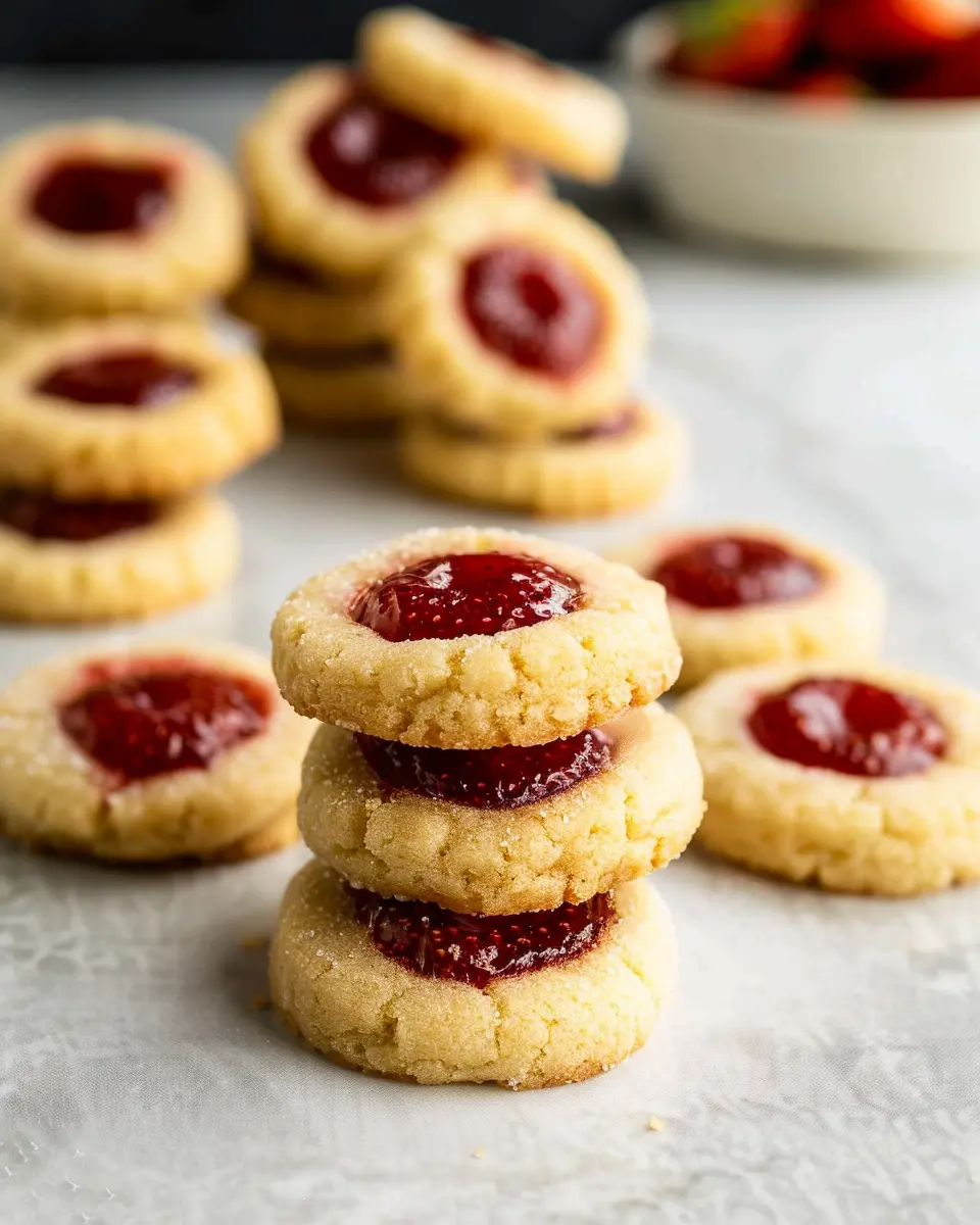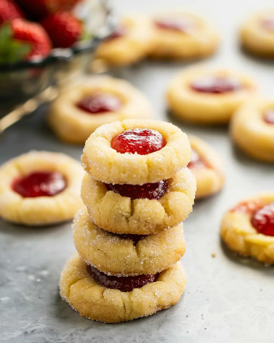 The heart of these cookies is the jam, so choose a high-quality strawberry jam that’s a bit thick. If you can, make your own or opt for jam without added preservatives for a more authentic taste. When making the thumbprint, use your thumb or the back of a spoon to create a well that’s not too deep; this ensures the filling doesn’t overflow during baking. For a touch of flair, consider adding a sprinkle of lemon zest into the jam for a refreshing twist!