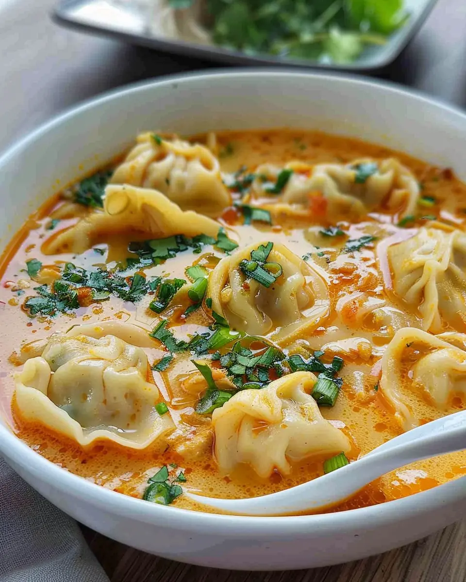 In conclusion, Thai Red Curry Dumpling Soup not only satisfies your hunger but also intrigues your palate, inviting you to explore the vibrant flavors of Thai cuisine. Whether for a cozy dinner or a fun party dish, this recipe is sure to be a hit!