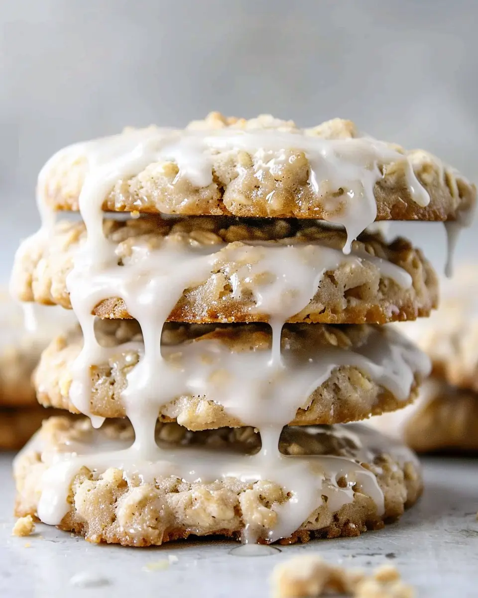 Once your cookies have cooled completely, drizzle the icing generously over each cookie. For more visual appeal, you can even experiment with decorative swirls! Allow the icing to set, then it’s time to dig in. You might want to brew a cup of coffee or tea to pair with these cookies, enhancing those warm, oatmeal flavors.
