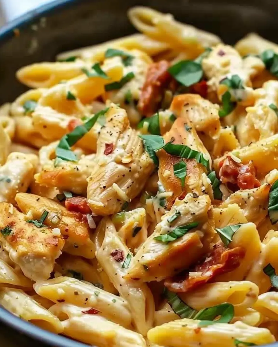 PrintTuscan Chicken Pasta with Cottage Cheese: A Creamy Delight Awaits