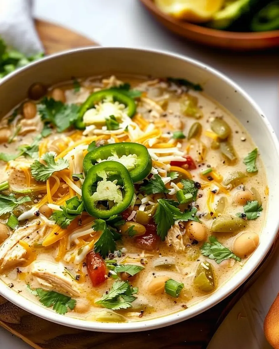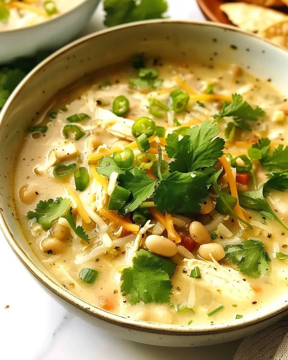 And there you have it—a delightful and filling bowl of white chicken chili that’s ready to be devoured. It’s perfect for family dinners, meal prepping, or impressing friends at gatherings. Happy cooking!