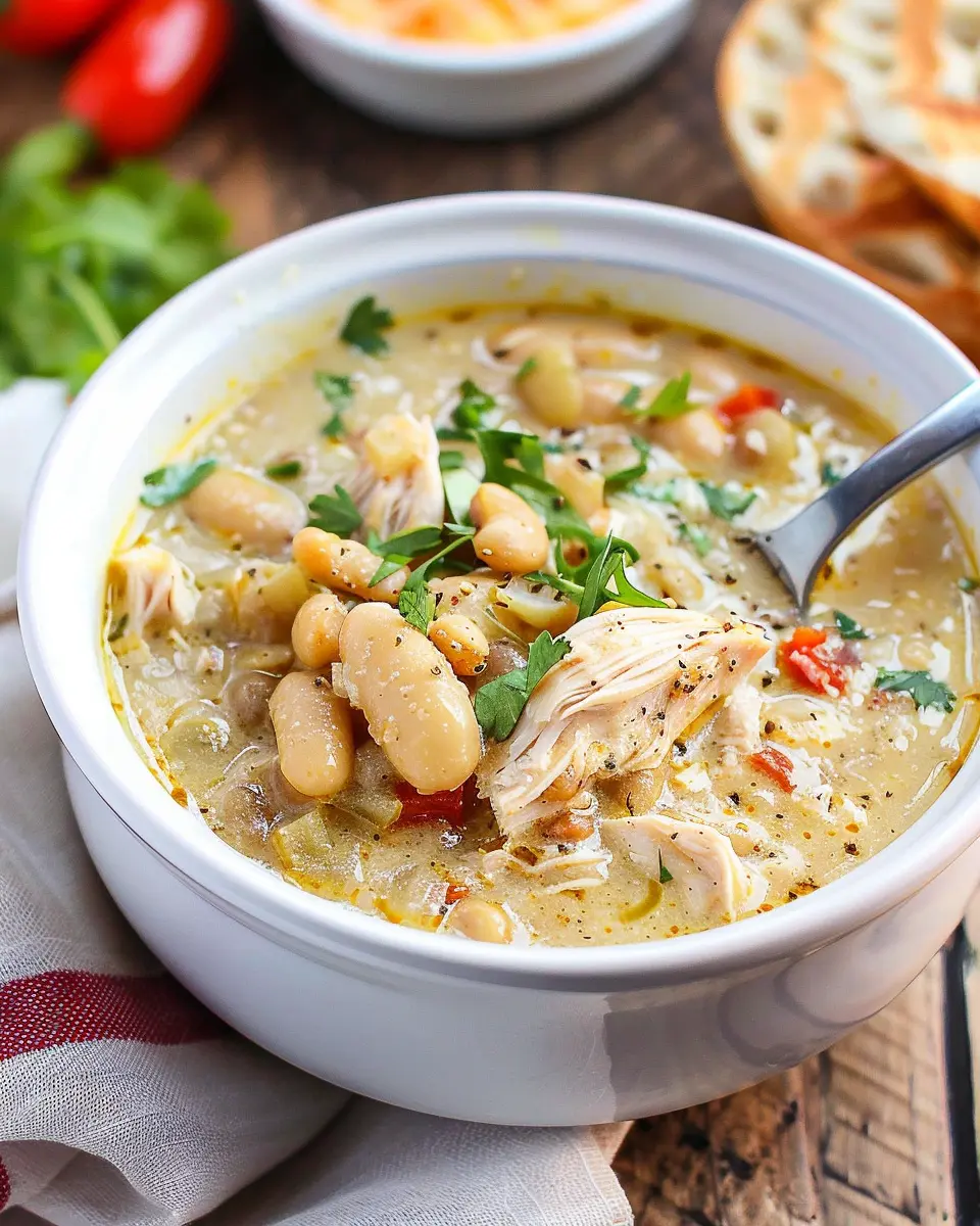 • Endless Customization: Whether you like it spicy or prefer a milder flavor, white chicken chili offers endless opportunities for customization. Add corn for sweetness, jalapeños for heat, or even different beans for texture!